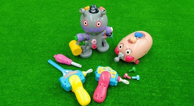 電動ドライバーやレンチ、ねじをつかってアンパンマンごうやだだんだんなどを