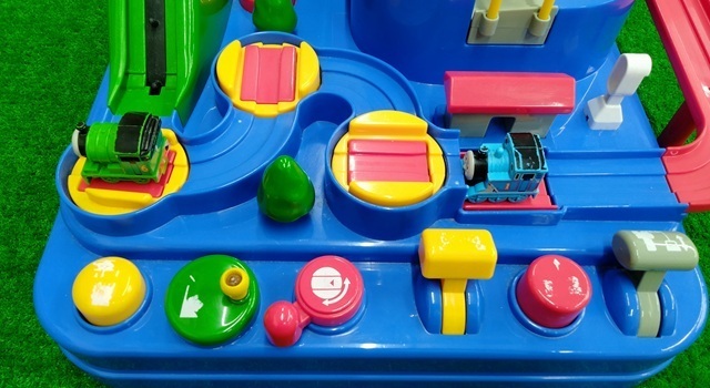 レバーを使ってトーマスとパーシーを走らせるおもちゃです。