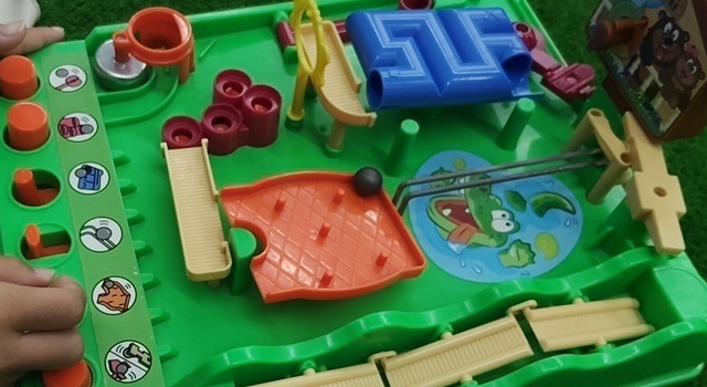 ワニワニ池:ボールが落ちないようにレーンを開いた閉じたり